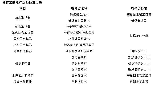 Ⅳ、鍋爐給水取樣冷卻器的取樣點(diǎn)及位置見表: