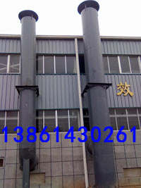 一種排煙消聲器,一種降低氣浪波壓,減少嗓音的排煙消聲器。它包括一個(gè)帶有尾管的筒體,筒體的一個(gè)端口內(nèi)設(shè)有一個(gè)小孔管,筒體內(nèi)設(shè)有一塊隔板,小孔管穿過(guò)隔板上的中心孔。在筒體內(nèi)靠尾管的那一端設(shè)有四塊阻尼板,兩塊阻尼板之間形成一個(gè)降壓膨脹室,四塊阻尼板形成了三個(gè)降壓膨脹室。阻尼板由一塊直徑和筒體內(nèi)徑一樣大的阻尼管隔板及安裝在其上的阻尼管組成。