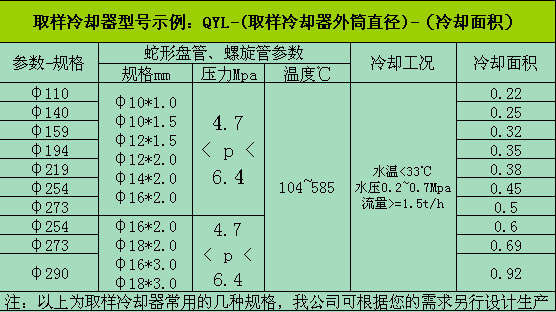 取樣冷卻器用于電廠電站、鋼鐵冶煉、化工、紡織,印染等鍋爐房爐水、汽水取樣冷卻化驗,品種系列有:蒸汽取樣冷卻器、爐水取樣冷卻器、給水取樣冷卻器、疏水取樣冷卻器、凝結(jié)水取樣冷卻器。鍋爐及熱力系統(tǒng)中的水、蒸汽大都溫度較高,而高溫不便于取樣、不便于測定。取樣冷卻器可以將爐水冷卻到(30-40度)、將蒸汽冷卻成水并冷卻到(30-40度),便于操作人員安全取樣及達到冷卻介質(zhì)溫度降到30-40度以下滿足中華人民共和國電力行業(yè)DL/T 457—91的標(biāo)準(zhǔn),達到取樣化驗要求。