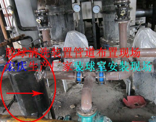 凝汽器海綿膠球清洗裝置系統(tǒng)的組成:收球網(wǎng)、裝球室、分匯器、膠球輸送泵、二次濾網(wǎng)及管道閥門和控制部件組成。