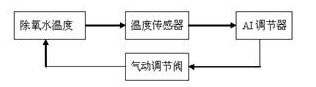 旋膜除氧器溫度:用PT100測(cè)量水的溫度,通過溫度變化調(diào)節(jié)氣動(dòng)薄膜調(diào)節(jié)閥的開度,改變蒸汽量的大小,使溫度保持在104度,調(diào)節(jié)器的型號(hào)為AI-808AX3L2L2。