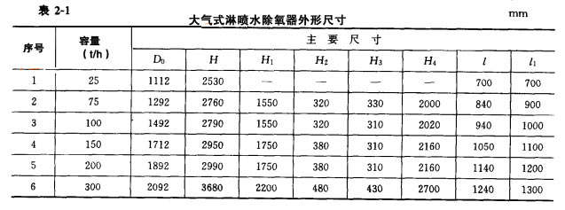 這種除氧器用于配套中壓機組。此類除氧器外形尺寸見表2-1 (供參考)。
