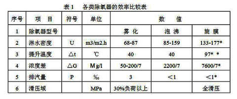 旋膜除氧器的傳熱、傳質(zhì)方式與已有的液柱式、霧化式和泡沸式不同,它是將射流旋轉(zhuǎn)膜和懸掛式泡沸三種傳熱、傳質(zhì)方式縮化為一體的傳熱、傳質(zhì)方式。它具有很高的效率。
