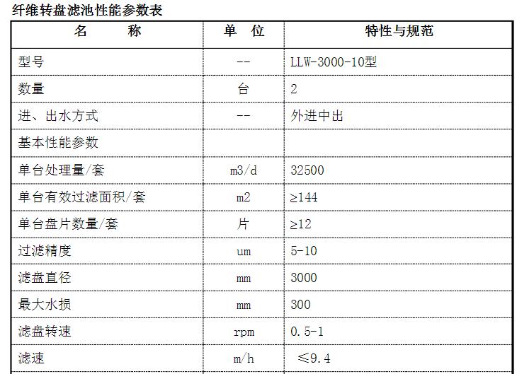 纖維轉(zhuǎn)盤濾布濾池過濾器裝置技術(shù)要求: